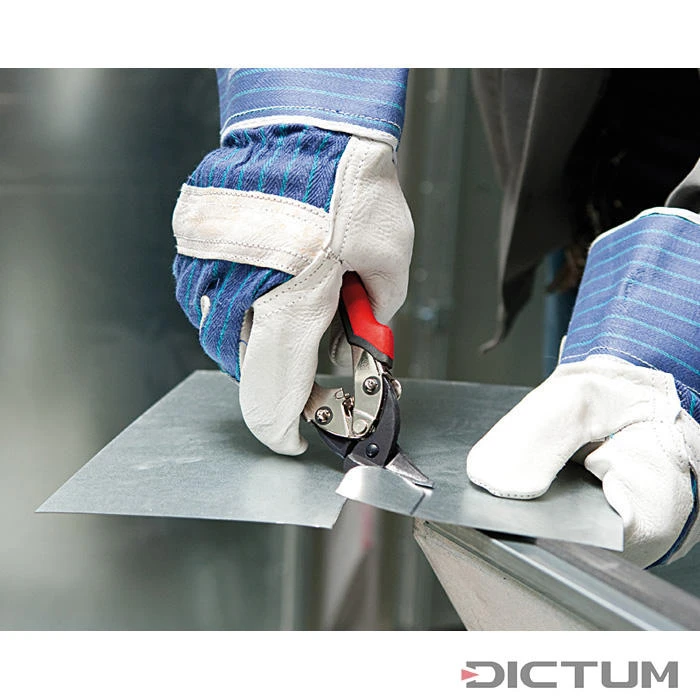 Grâce à sa forme compacte cette cisaille convient, en plus des coupes rectilignes, parfaitement pour les découpes étroites de figures et pour les espaces réduits. L’effet de levier optimisé réduit l’effort de coupe de 25 %. Le système pratique de verrouillage qui sert de limiteur d’ouverture et la poignée hybride, permettent ensemble un travail sans fatigue. Tôles d’acier jusqu’à 1,2 mm et tôles d’acier spécial jusqu’à 0,7 mm d’épaisseur.