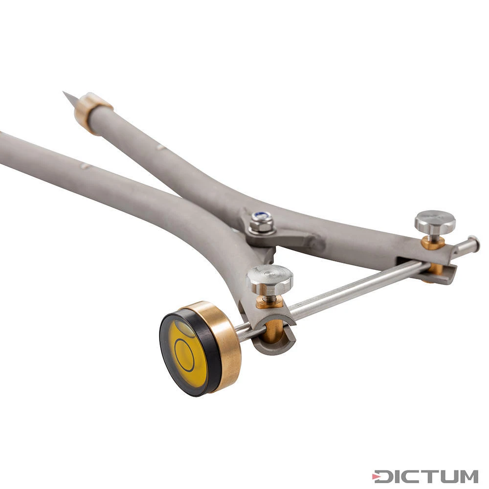 Pour un transfert précis des contours, notamment pour les assemblages angulaires de bois rond (constructions en rondins). Le »mylogscriber« séduit par ses tiges incurvées en acier inoxydable, sablées avec des billes de verre, et associées à une grande variété de composants en laiton haut de gamme, ainsi qu’un niveau à bulle de précision doté d’une lentille en verre poli et avec une résolution angulaire de 40 minutes d’arc. Support de crayon identique des deux côtés, doté d’une aiguille de palpage et d’un crayon résistant à l’eau. Livré dans un coffret en plastique solide.