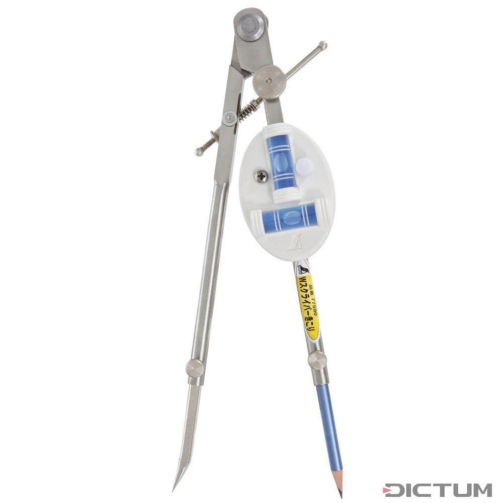 Compas traceur japonais avec un bon rapport qualité/prix pour marquer les entailles d’angles dans la construction de maisons en rondins empilés. Niveau à bulle amovible, pointe arrondie avec fonction de copie, réglage fin par tension d’un ressort. Vous pouvez mettre un crayon dans les orifices des deux branches. Acier inoxydable. Ouverture max. 320 mm.