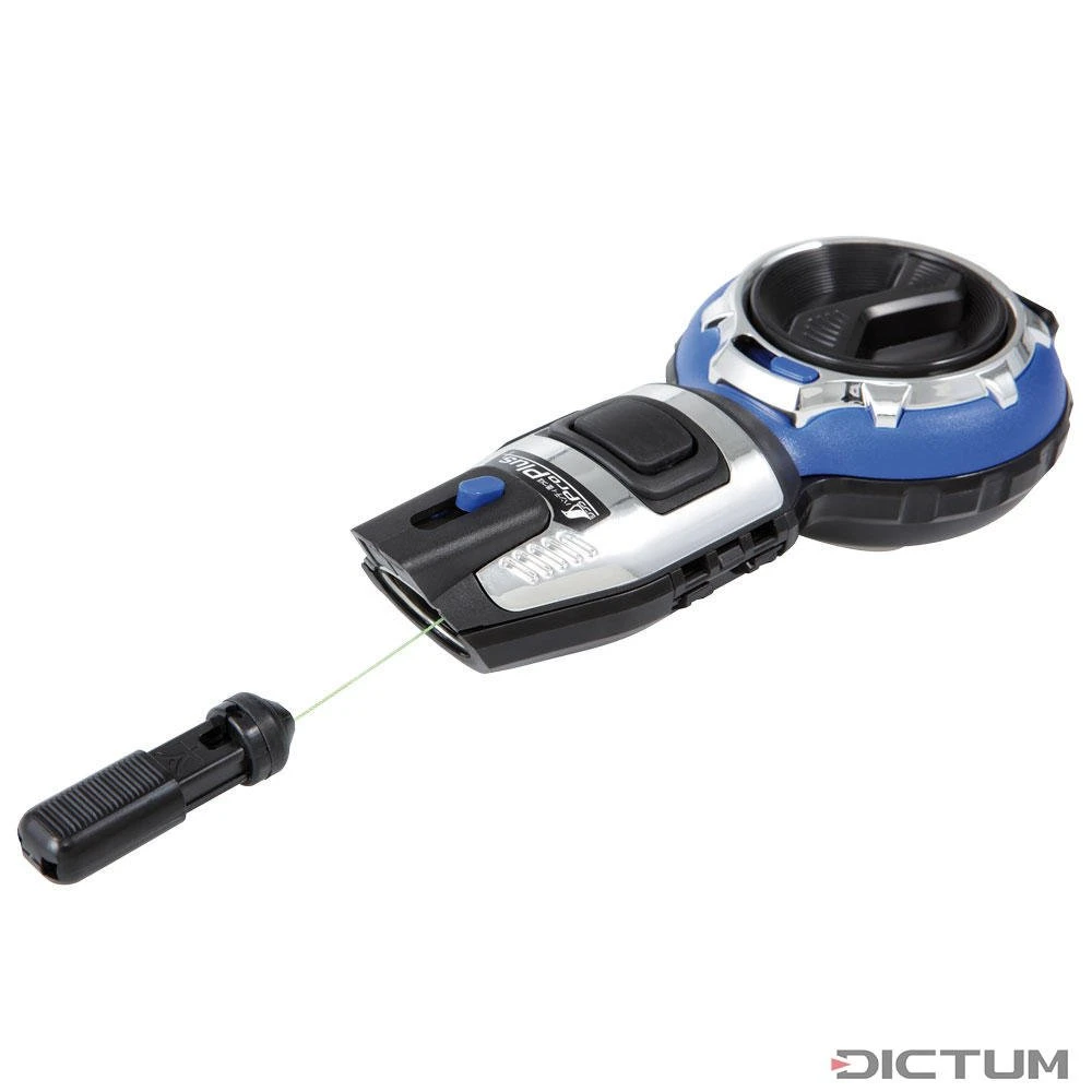 Comme pour un cordeau à tracer à la craie, une ficelle à tracer à l’encre sert à appliquer des lignes droites sur des composants en bois. On tire un fin fil de soie à travers un coton imbibé d’encre on le fait cogner la pièce à usiner en le maintenant tendu. De la sorte, on obtient des lignes exactes, extrêmement fines, même pour les pièces à usiner inégales comme par exemple les bois ronds et même sur des longueurs importantes (jusqu’à 10 m). Peut aussi être utilisé comme fil à plomb. Boîtier en matière synthétique solide, pas de perte, le fil se rembobine automatiquement. Sans encre, avec avec mode d’emploi. 180 x 80 x 40 mm.