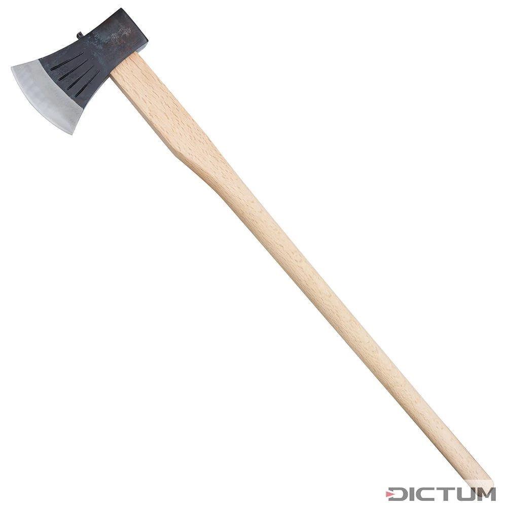 Pour fendre de petites et moyennes pièces et poser des cales. La tête très bombée garantit une force de frappe optimale La lame en trois couches au cœur en acier au carbone hautement allié ( 58-60 HRC) convient également pour les hautes sollicitations. Grande surface de frappe, durcie. Long manche non-verni en chêne blanc japonais Livré avec un étui exclusif en cuir.