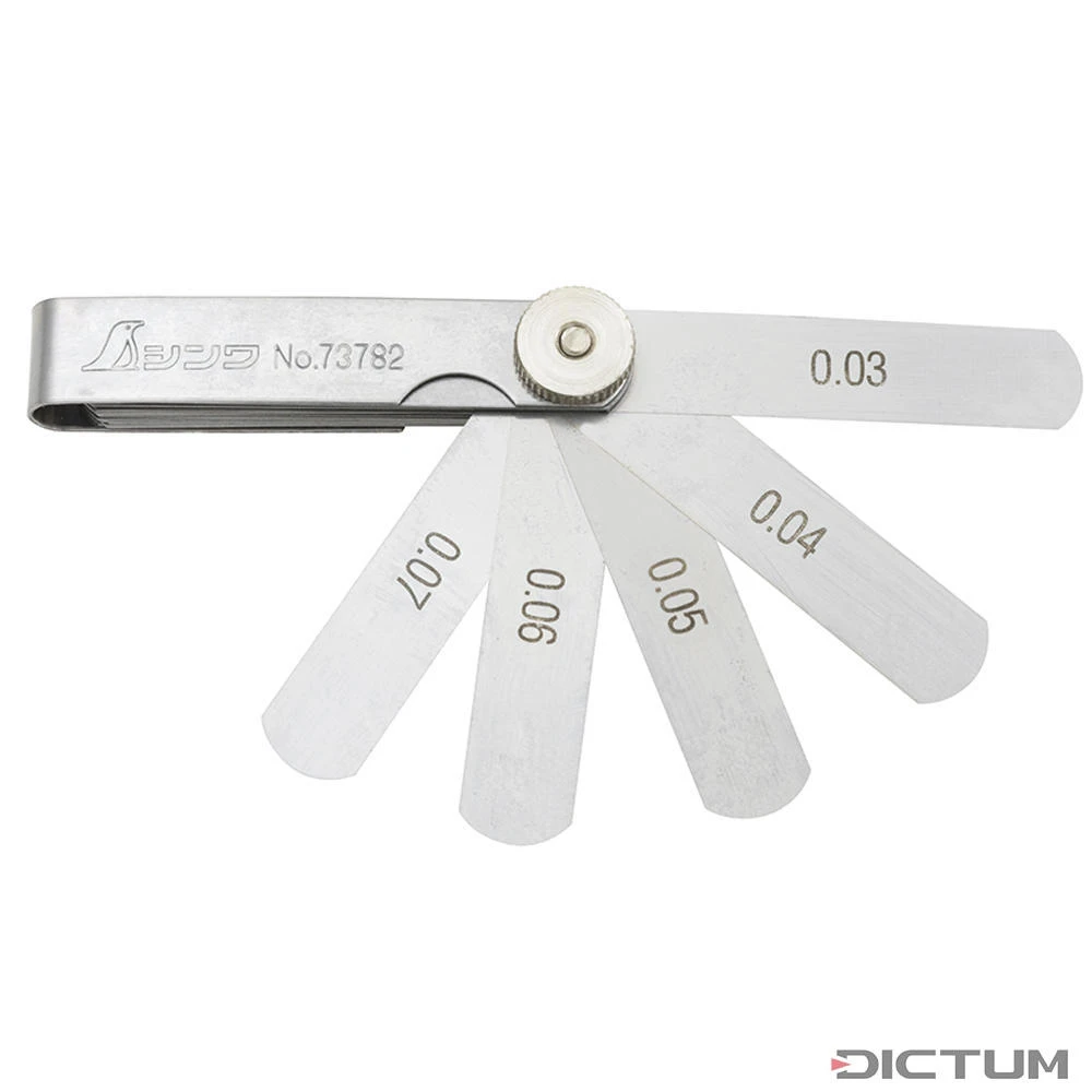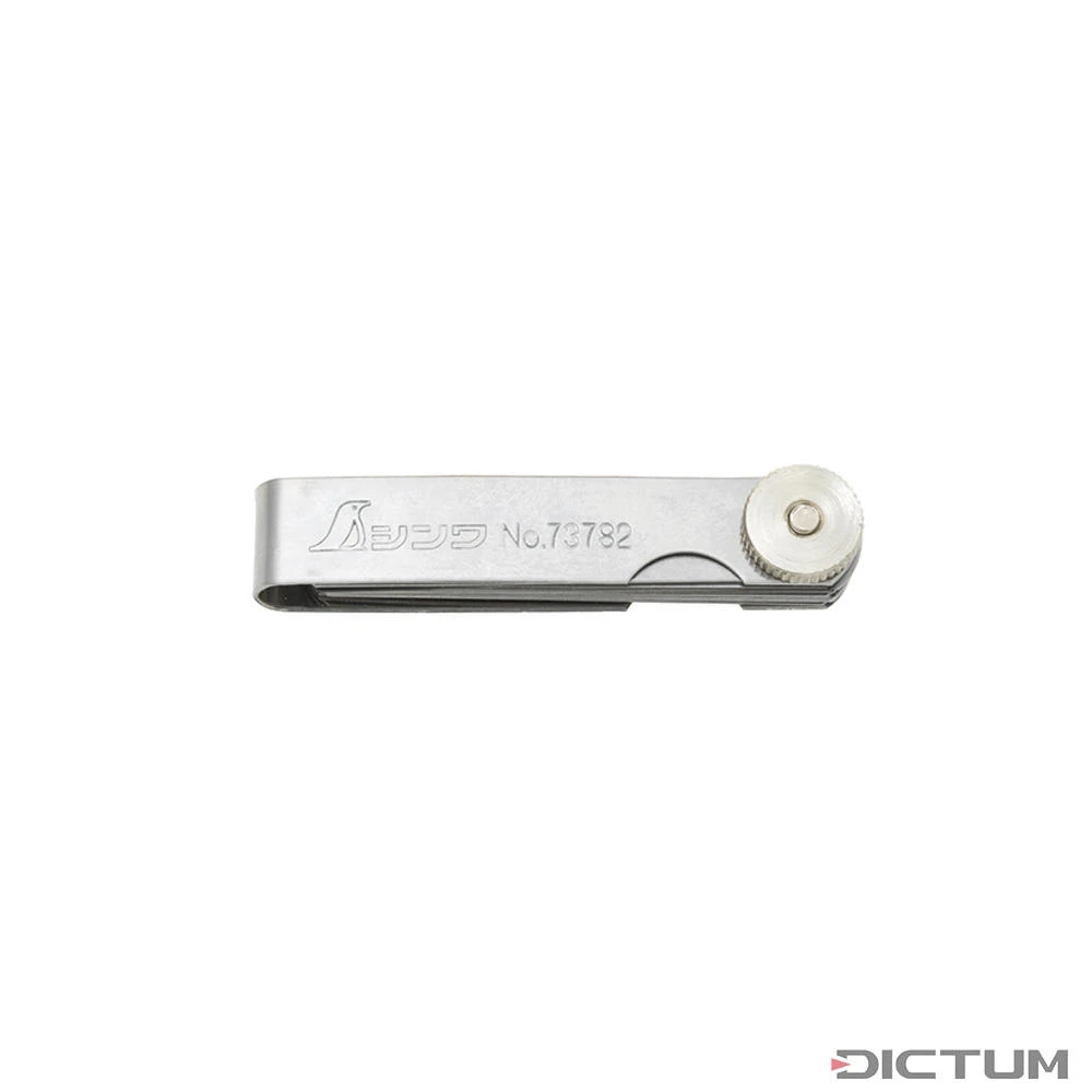 Jauge d’épaisseur précise en acier inoxydable pour le contrôle des mesures d’écartement. 25 lames de longueur 65 mm offrant une gamme d’épaisseurs de lames entre 0,03 mm et 1,00 mm.