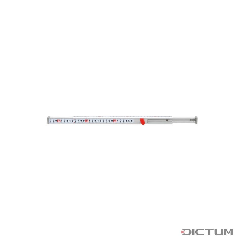 La jauge télescopique de Shinwa est une assistante indispensable pour mesurer les dimensions de la baie pendant la construction à l’intérieur ou la maçonnerie. La graduation claire est bien lisible même dans de mauvaises conditions de luminosité. La jauge a deux profil à rail télescopique. Quand le rail avec la vis de fixation rouge est prolongé complètement, vous pouvez continuer à mesurer avec le deuxième rail (vis de fixation jaune) et relever directement. Ce système de mesure bien pensé n’a pas besoin de l’addition des mesures. Le centre statique permet une utilisation pratique d’une seule main. Les bouts en plastique empêchent les éraflures sur les surfaces.