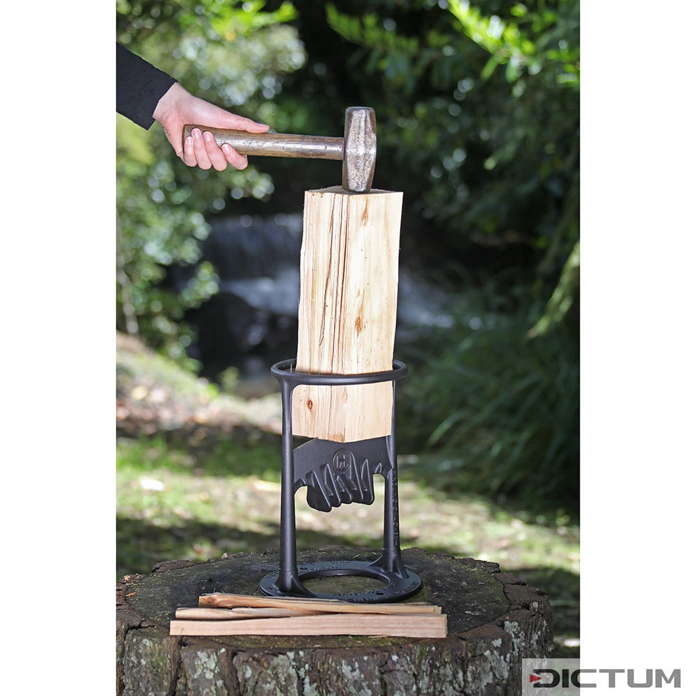 Le Kindling Cracker en fonte massive conçu en Nouvelle-Zélande et fabriqué en Australie réduit considérablement le risque de blessure lors de la fente de bûches. Contrairement au processus de fente en utilisant une hache, qui doit être guidée dans l’air de manière plus ou moins contrôlée, le Kindling Cracker permet de placer la bûche sur le tranchant orienté vers le haut et de la couper en morceaux avec relativement peu d’effort à l’aide d’un outil de frappe – un marteau ou une bûche suffisent dans ce cas. L’anneau moulé sur le dessus offre non seulement une protection mais empêche également la bûche de basculer. Le Kindling Cracker doit être fermement vissé au sol ou à un billot à l’aide des trous à vis prévus à cet effet sur la base, pour assurer un support solide. La tranchant peut être réaffûté à la main. Poids : 4,8 à 9,4 kg.