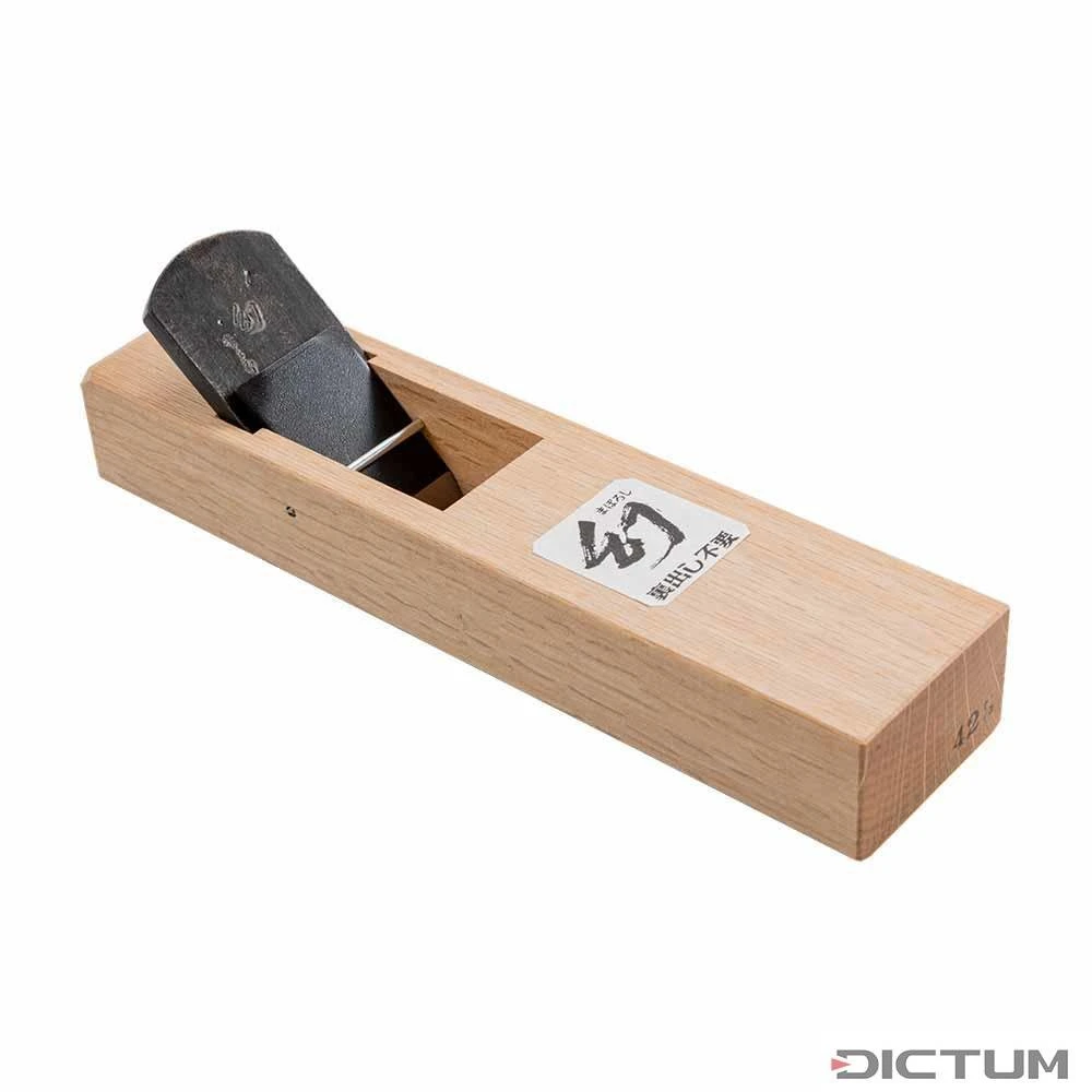 Le nom est une combinaison du mot Tsune, qui signifie » toujours «, et de Saburo, le nom de l’ancien maître » Saburo Uozumi «. L’atelier de maître Tsunesaburo, de 3eme génération, est très apprécié pour la qualité et la diversité de ses modèles de rabots. Les lames permettent d’obtenir une surface très fine et lisse. La particularité de ces fers de rabot est la rectification concave arrière, sans arêtes latérales. Ces fers de structure » Uradashi Fuyou « permettent d’obtenir un aiguisage très performant avec le moindre effort. Âme de coupe en Acier Papier Bleu. Le nom du forgeron est gravé sur chaque fer de rabot. L’angle d’inclinaison des fers est de 40°. Bloc en chêne blanc japonais.